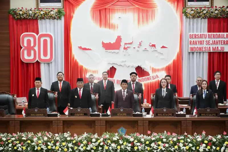 Sulutnow.com, Manado — Gubernur Sulawesi Utara (Sulut) Yulius Selvanus bersama Wakil Gubernur Victor Mailangkay, pimpinan dan anggota DPRD Sulut, serta jajaran Forkopimda mengikuti secara khidmat Pidato Kenegaraan Presiden RI Prabowo Subianto pada Sidang Tahunan MPR RI dan Sidang Bersama DPR–DPD RI, Jumat (15/8/2025).